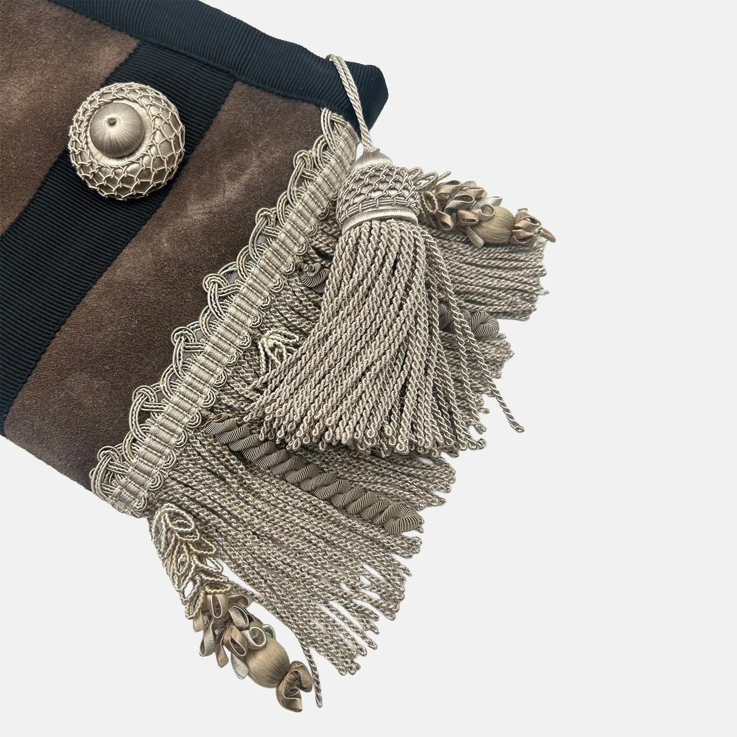 Pochette en veau velours marron est confectionnée dans un cuir de grande qualité, alliant douceur et raffinement.